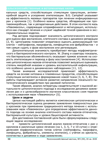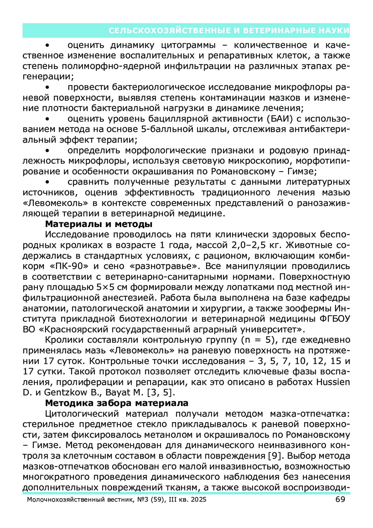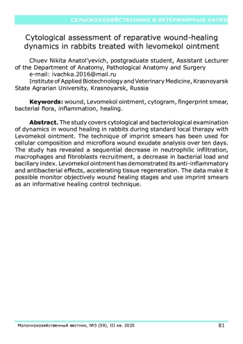 Статья: Цитологическая оценка динамики репаративных процессов в ранах у кроликов при использовании классического метода лечения мазью «Левомеколь» (2025)