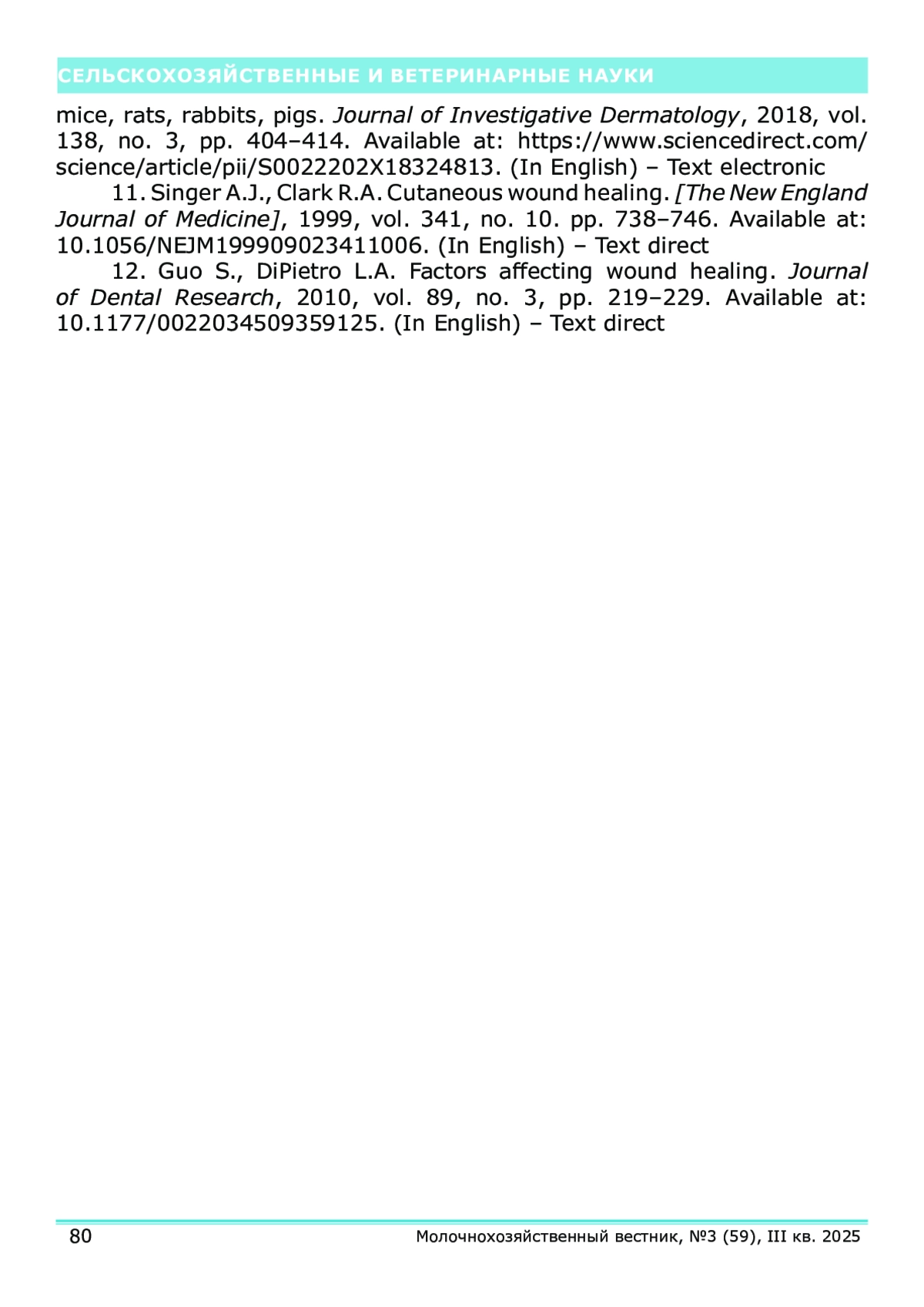 ЧУЕВ Н. А. ЦИТОЛОГИЧЕСКАЯ ОЦЕНКА ДИНАМИКИ РЕПАРАТИВНЫХ ПРОЦЕССОВ В РАНАХ У КРОЛИКОВ ПРИ ИСПОЛЬЗОВАНИИ КЛАССИЧЕСКОГО МЕТОДА ЛЕЧЕНИЯ МАЗЬЮ «ЛЕВОМЕКОЛЬ» // МОЛОЧНОХОЗЯЙСТВЕННЫЙ ВЕСТНИК. 2025. № 3 (59)