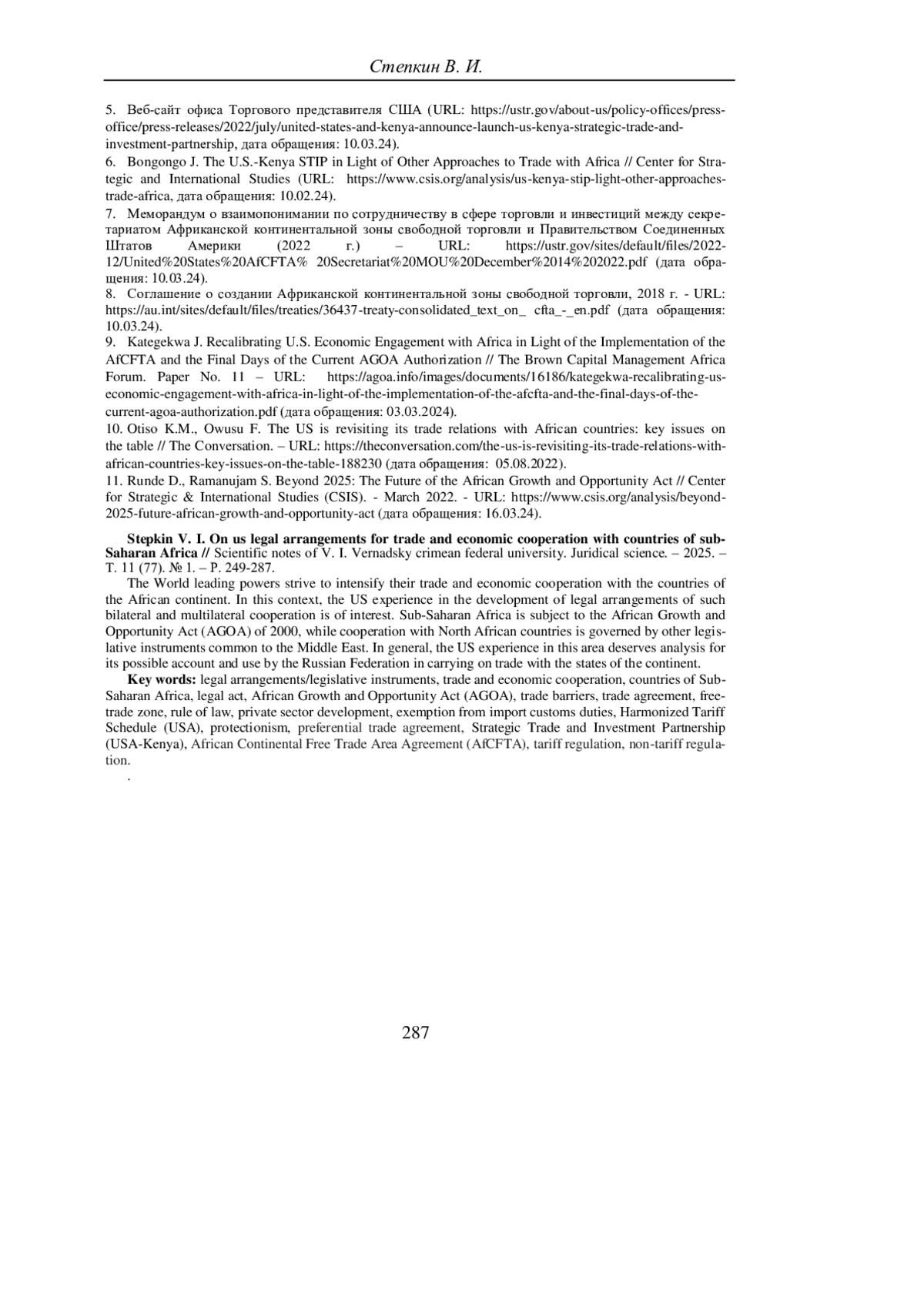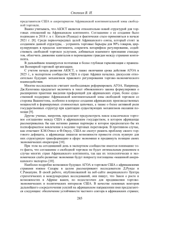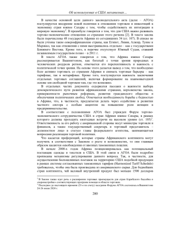 9. Kategekwa J. Recalibrating U.S. Economic Engagement with Africa in Light of the Implementation of the AfCFTA and the Final Days of the Current AGOA Authorization // The Brown Capital Management Africa Forum. Paper No. 11 - URL: https://agoa.info/images/documents/16186/kategekwa-recalibrating-useconomic-engagement-with-africa-in-light-of-the-implementation-of-the-afcfta-and-the-final-days-of-the-current-agoa-authorization.pdf (дата обращения: 03.03.2024).