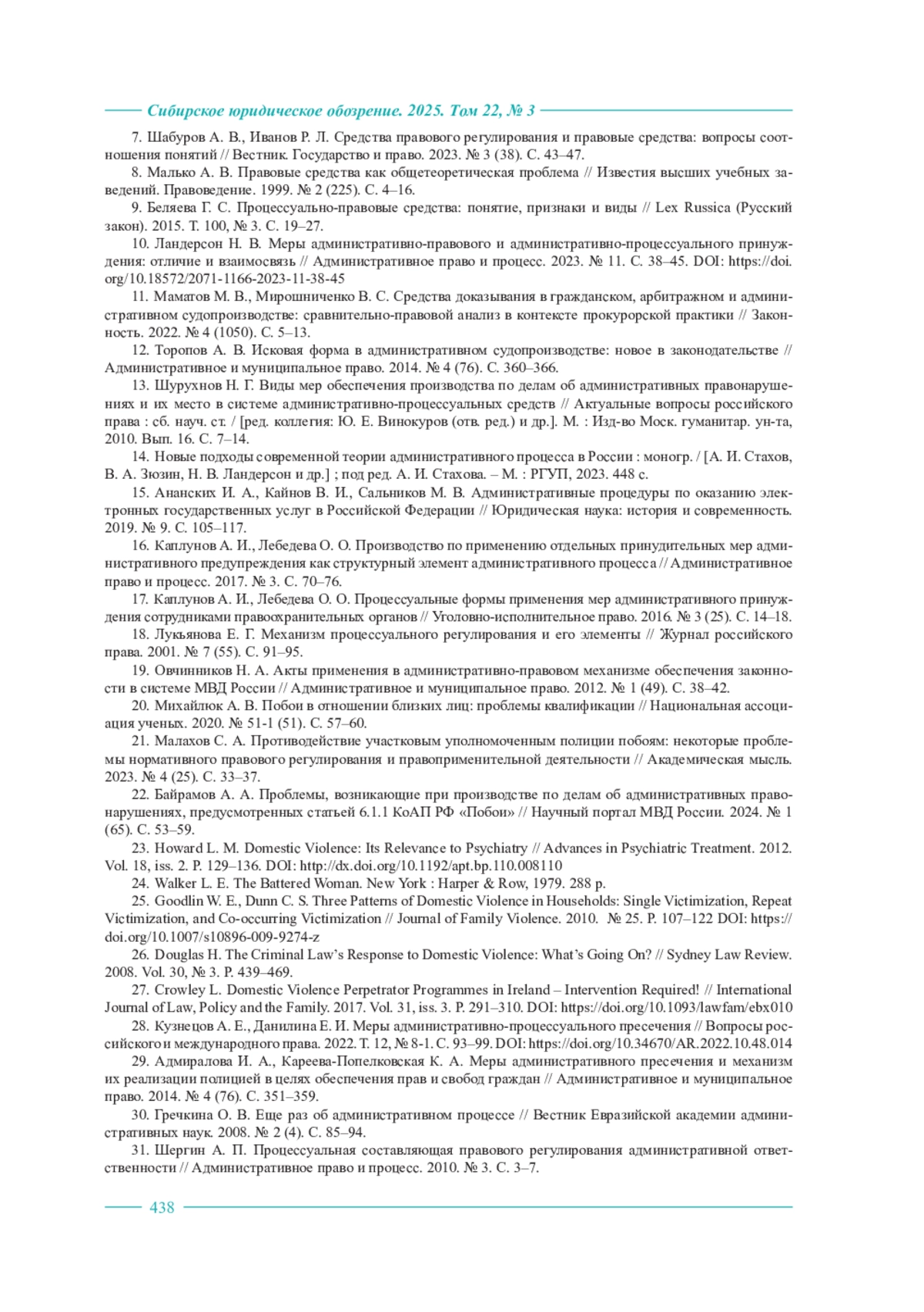 2. Гайдуков А. А. Административно-правовые меры пресечения правонарушений в семейно-бытовой сфере // Научный портал МВД России. 2024. № 1 (65). С. 45-52.