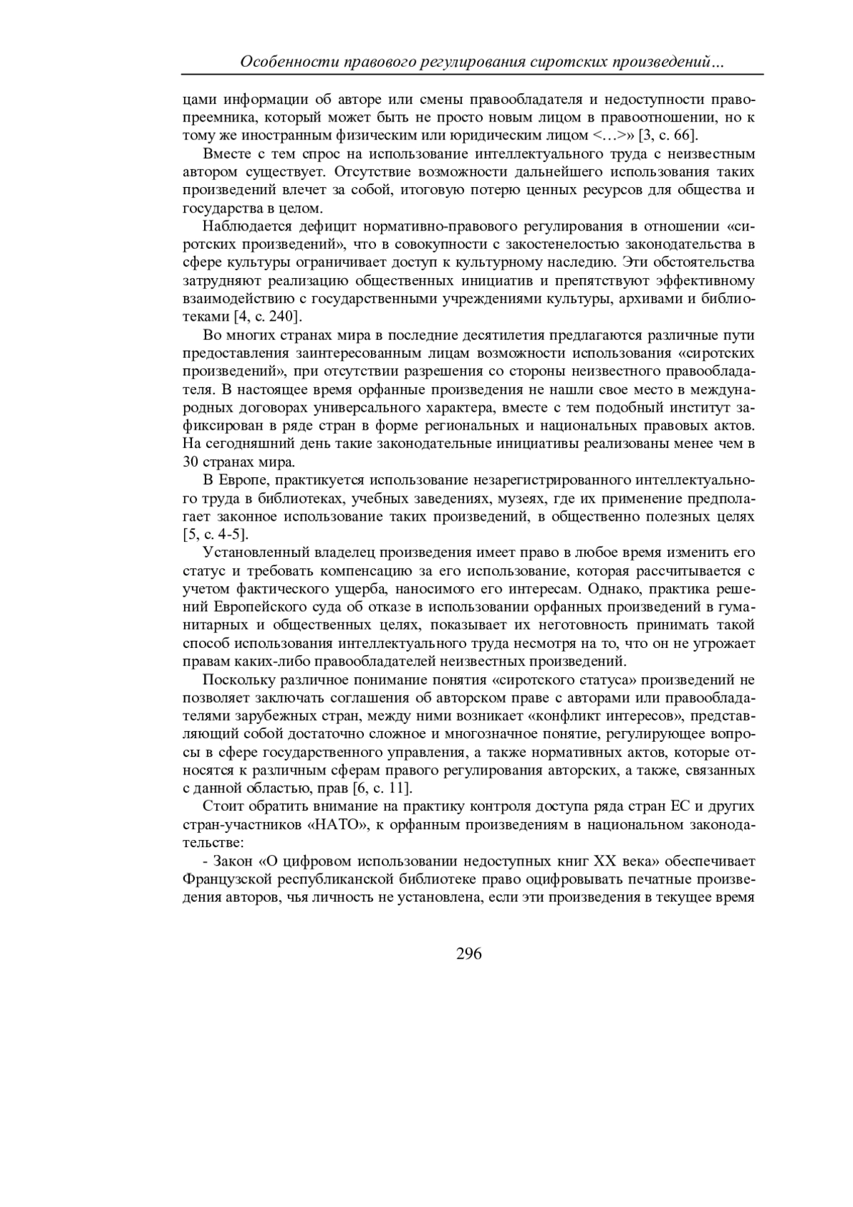 Ключевые фразы: сиротские произведения, НАЦИОНАЛЬНЫЙ ПРОЕКТ, авторское право, цифровизация, смежное право, правообладатель, культурное достояние, ЗАРУБЕЖНЫЙ ОПЫТ, законодательный контроль