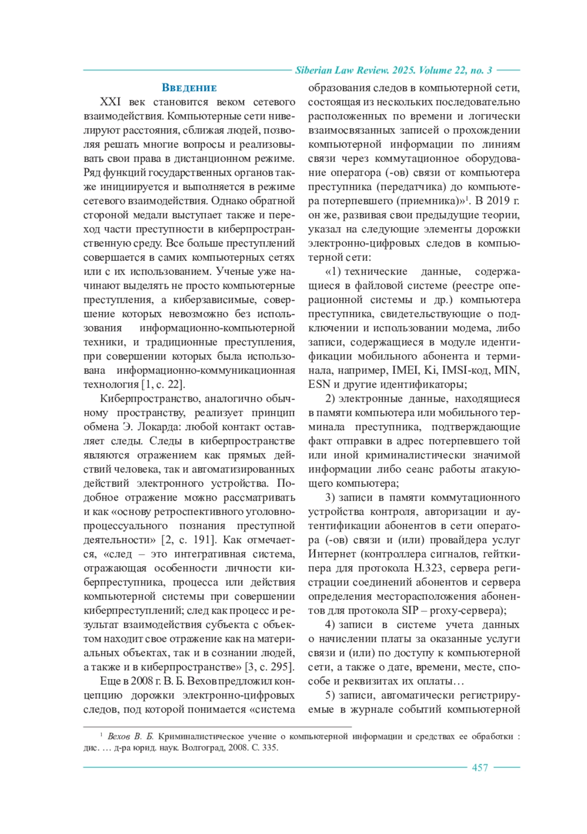 4. Вехов В. Б. Дорожка электронных следов: понятие и особенности судебного компьютерно-технического исследования // Уголовное производство: процессуальная теория и криминалистическая практика : материалы VII междунар. науч.-практ. конф., 25-26 апр. 2019 г., Симферополь-Алушта / отв. ред.: М. А. Михайлов, Т. В. Омельченко. Симферополь : Ариал, 2019. С. 18-20.