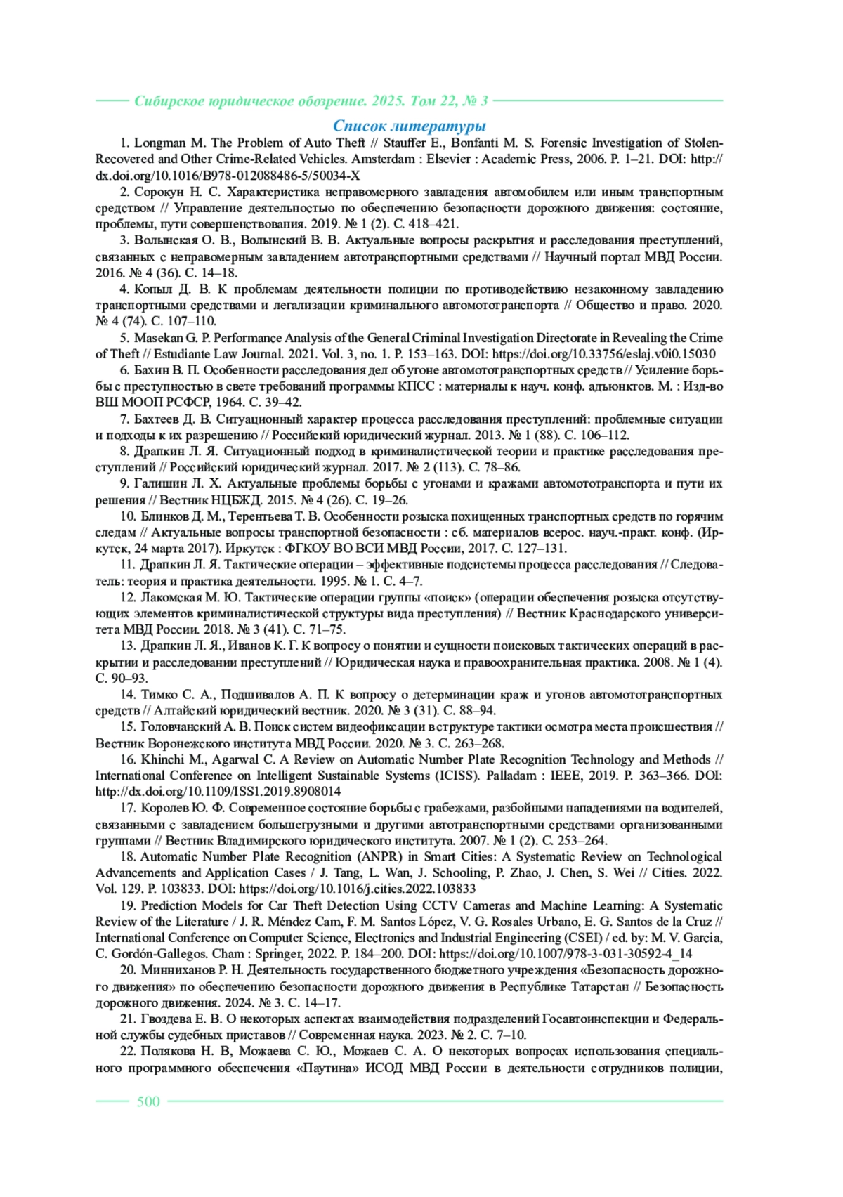 1. Longman M. The Problem of Auto Theft // Stauffer E., Bonfanti M. S. Forensic Investigation of Stolen-Recovered and Other Crime-Related Vehicles. Amsterdam : Elsevier : Academic Press, 2006. P. 1-21. https://doi.org/10.1016/B978-012088486-5/50034-X