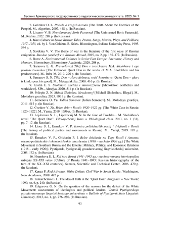 5. Сорокина, В. В. Тема войны в литературе первой волны русской эмиграции / В. В. Сорокина. - Текст: непосредственный // Русское зарубежье. - 2015. - № 2. - С. 165-172.