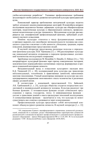 В статье рассматриваются нормативные требования к должностям профессорско-преподавательского состава, которые обуславливают формирование методической культуры; анализируются дефиниции и компонентный состав понятий: «педагогическая культура», «профессионально-педагогическая культура», «методическая культура»; предлагается авторское содержание понятия «методическая культура преподавателя».