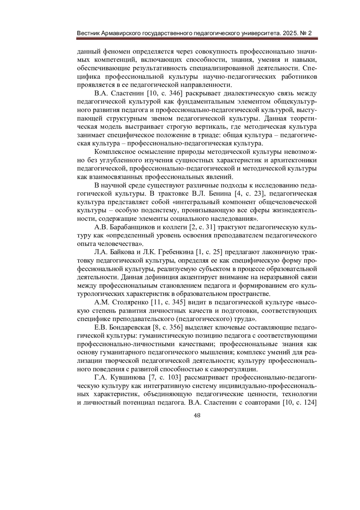 7. Кувшинова, Г. А. Понятия “педагогическая культура” и “профессионально-педагогическая культура” как феномены педагогики / Г. А. Кувшинова. - Текст: непосредственный // Наука и образование: сохраняя прошлое, создаем будущее: сборник статей XII Международной научно-практической конференции. - Пенза: Наука и Просвещение, 2017. - С. 103-105. EDN: ZOMVRP