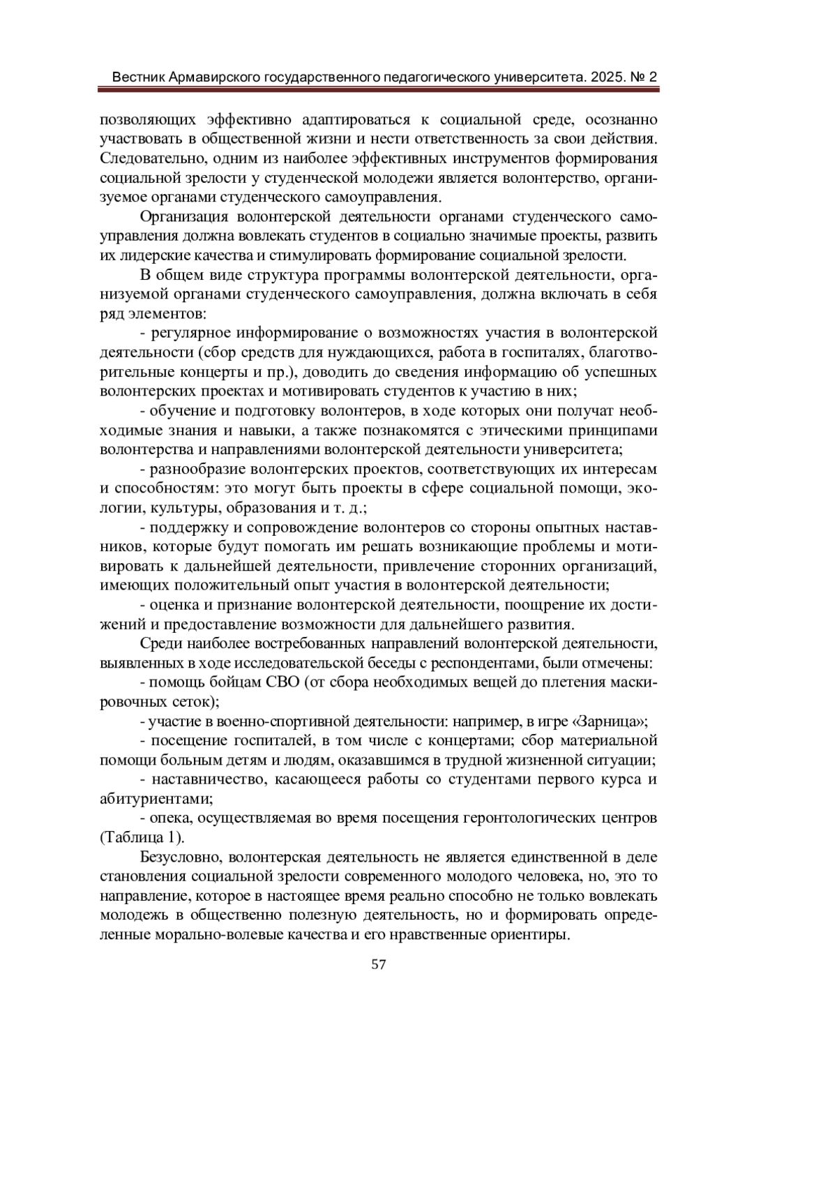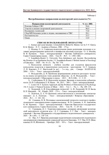 11. Суровцева, Д. С. Теоретико-прикладные основания организации волонтерской деятельности студентов вуза / Д. С. Суровцева, Л. Г. Пак. - Текст: непосредственный // Вестник Шадринского государственного педагогического университета. - 2025. - № 1 (65). - С. 110-118.