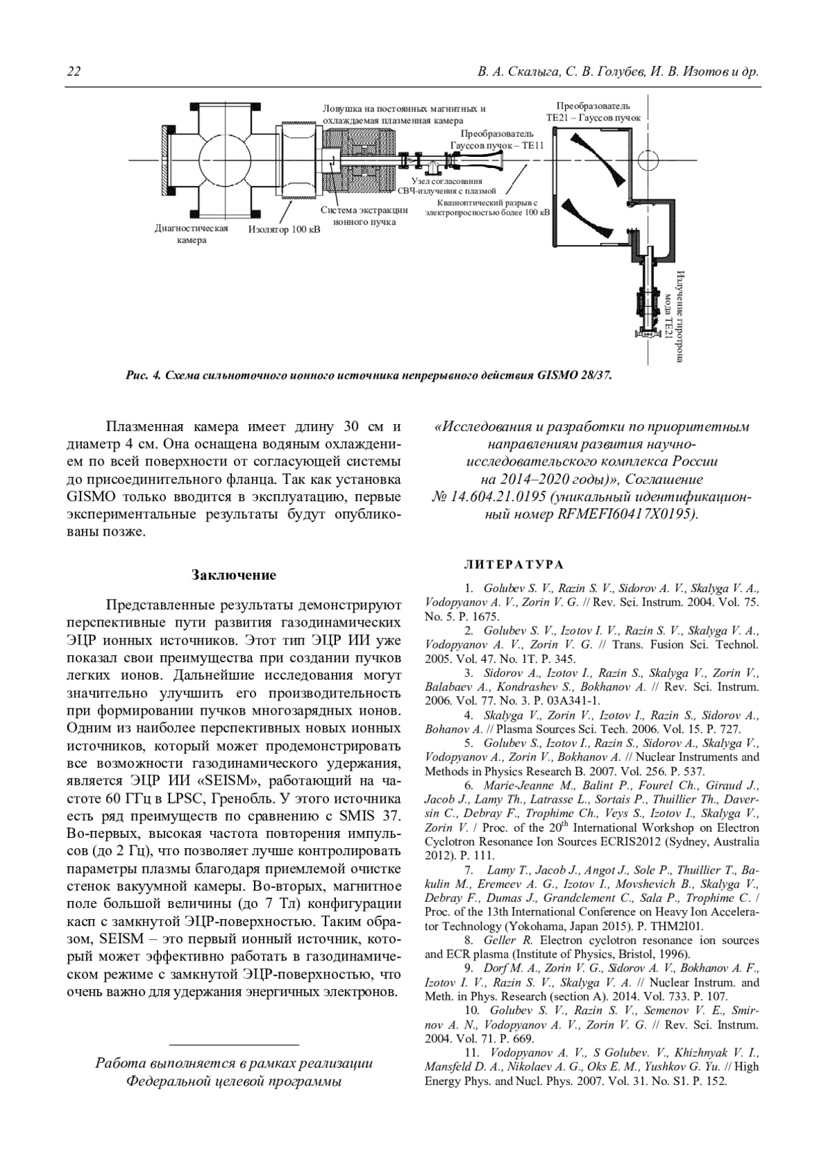 5. Golubev S., Izotov I., Razin S., Sidorov A., Skalyga V., Vodopyanov A., Zorin V., Bokhanov A. // Nuclear Instruments and Methods in Physics Research B. 2007. Vol. 256. P. 537.