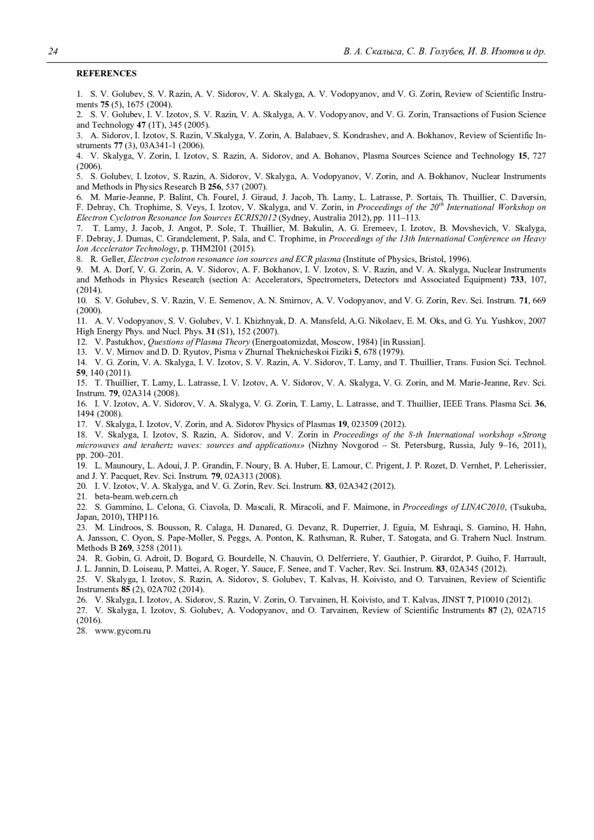 26. Skalyga V., Izotov I., Sidorov A., Razin S., Zorin V., Tarvainen O., Koivisto H., Kalvas T. // JINST. 2012. Vol. 7. P. P10010.
