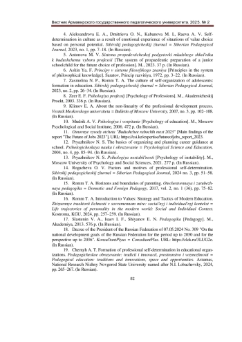 7. Засмолина, Н. П. Культура самоорганизации подростков: становление в воспитании / Н. П. Засмолина, Т. А. Ромм. - Текст: непосредственный // Сибирский педагогический журнал. - 2023. - № 2. - С. 26-34. EDN: XYIPFL