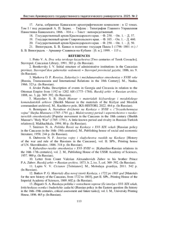 5. Манышев, С. Б. Шейх Мансур в материалах кизлярского и моздокского комендантских архивов: сборник документов / С. Б. Манышев. - М.: Кучково поле: ИКС-ХИСТОРИ, 2022. - 464 с. - Текст: непосредственный. EDN: RBNUAA