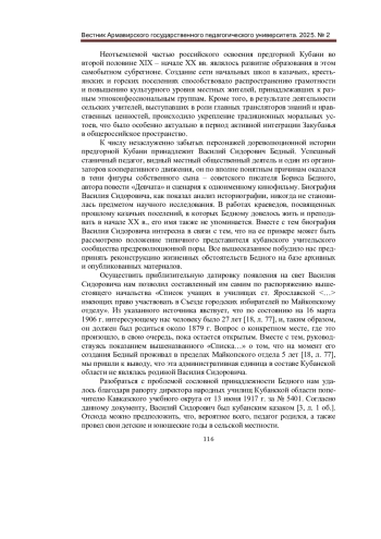 Статья: ИЗ ЖИЗНИ УЧИТЕЛЕЙ ПРЕДГОРНОЙ КУБАНИ НА РУБЕЖЕ XIX-XX ВВ.: ВАСИЛИЙ СИДОРОВИЧ БЕДНЫЙ (2025)