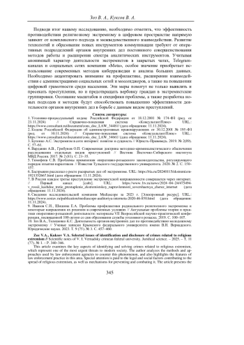 ЗОЗ В. А., КУКСОВ В. А. ОТДЕЛЬНЫЕ ВОПРОСЫ ВЫЯВЛЕНИЯ И РАСКРЫТИЯ ПРЕСТУПЛЕНИЙ, СВЯЗАННЫХ С РЕЛИГИОЗНЫМ ЭКСТРЕМИЗМОМ // УЧЕНЫЕ ЗАПИСКИ КРЫМСКОГО ФЕДЕРАЛЬНОГО УНИВЕРСИТЕТА ИМЕНИ В. И. ВЕРНАДСКОГО. ЮРИДИЧЕСКИЕ НАУКИ. 2025. ТОМ 11(77). №1