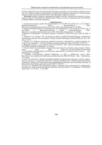 Статья: ОТДЕЛЬНЫЕ ВОПРОСЫ ВЫЯВЛЕНИЯ И РАСКРЫТИЯ ПРЕСТУПЛЕНИЙ, СВЯЗАННЫХ С РЕЛИГИОЗНЫМ ЭКСТРЕМИЗМОМ (2025)