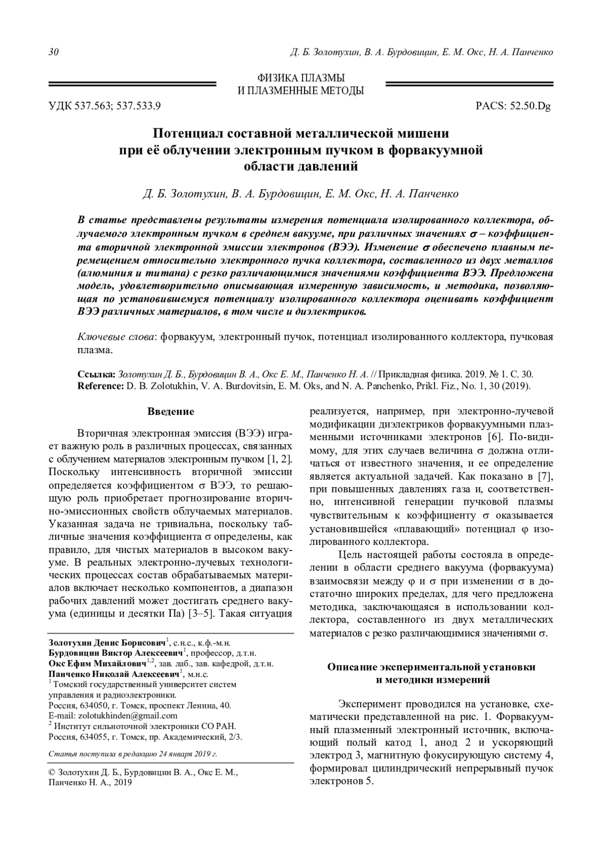 7. Бурдовицин В. А., Золотухин Д. Б., Окс Е. М., Панченко Н. А. // Прикладная физика. 2018. № 5. С. 21.