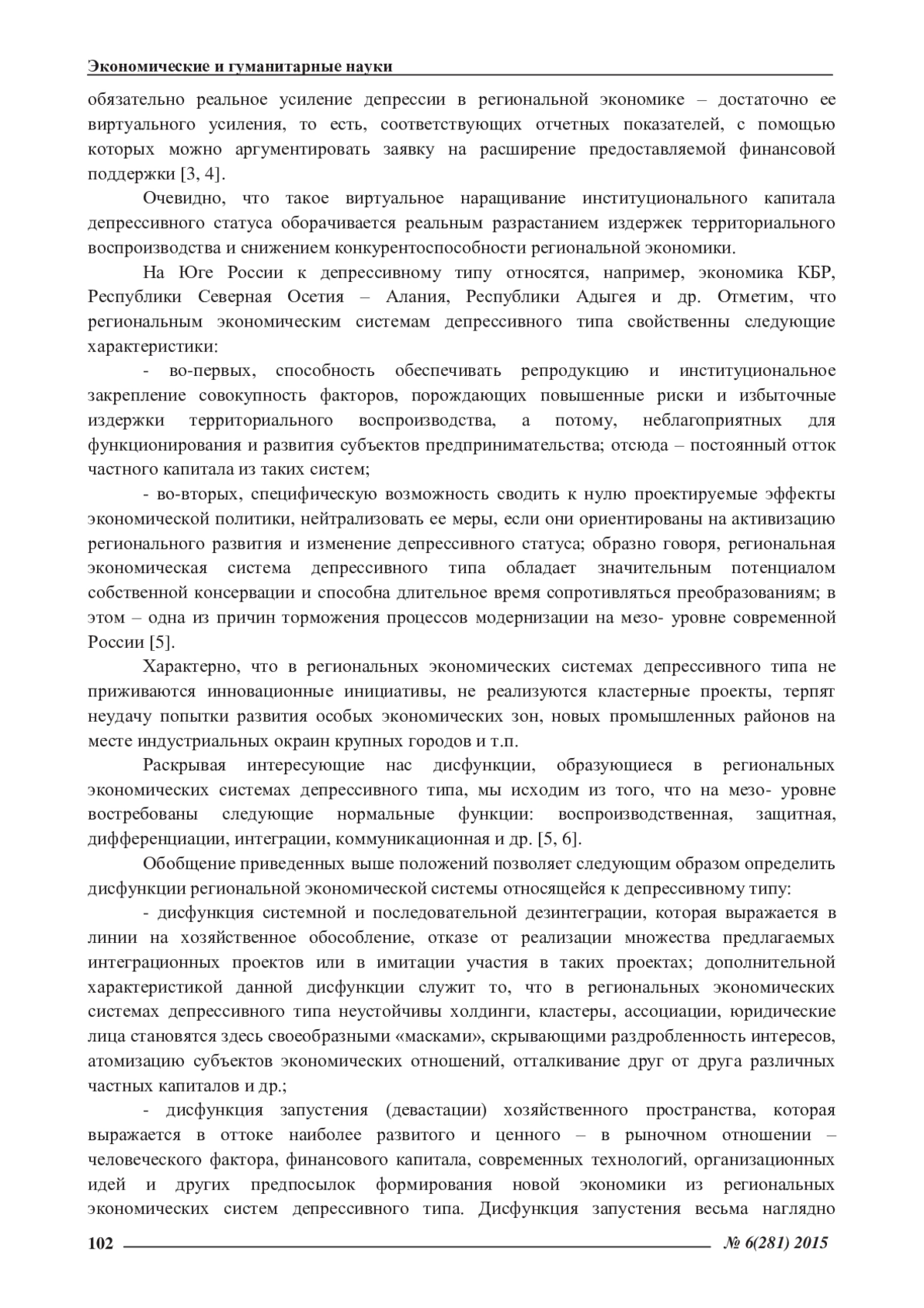 Статья: ДИСФУНКЦИИ РЕГИОНАЛЬНЫХ ЭКОНОМИЧЕСКИХ СИСТЕМ ДЕПРЕССИВНОГО ТИПА (2015)