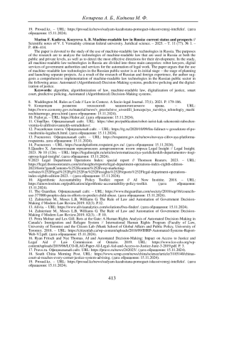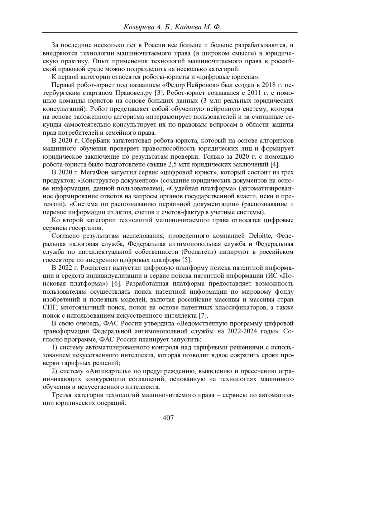 КОЗЫРЕВА А. Б., КАДИЕВА М. Ф. МАШИНОЧИТАЕМОЕ ПРАВО В РОССИИ: ТЕКУЩЕЕ СОСТОЯНИЕ И ПЕРСПЕКТИВЫ // УЧЕНЫЕ ЗАПИСКИ КРЫМСКОГО ФЕДЕРАЛЬНОГО УНИВЕРСИТЕТА ИМЕНИ В. И. ВЕРНАДСКОГО. ЮРИДИЧЕСКИЕ НАУКИ. 2025. ТОМ 11(77). №1