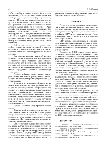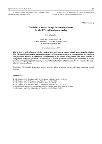 S. I. Zhegalov Model of a neural image formation scheme for the FPA with microscanning 59