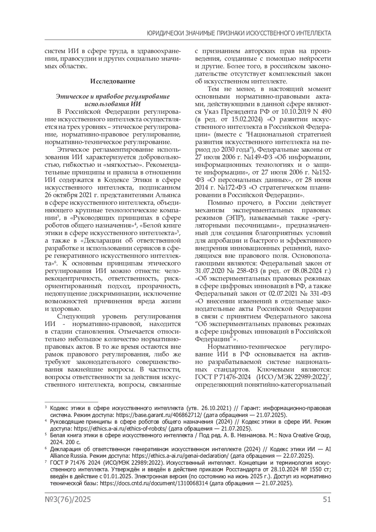 5. Горбачева Т.А. Искусственный интеллект: риски и проблемы внедрения в Российской Федерации // Информационная экономика: информация, аналитика. Прогнозы. 2025. № 1.