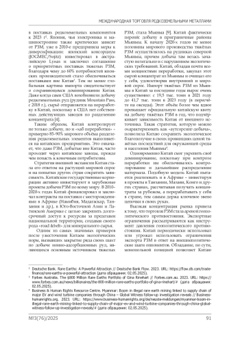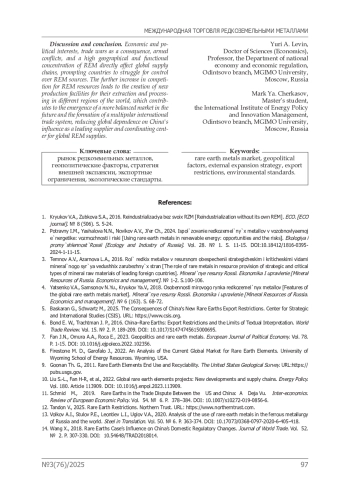 7. Fan J.N., Omura A.A., Roca E. Geopolitics and rare earth metals // European Journal of Political Economy. Vol. 78. 2023. P. 1-15. https://doi.org/10.1016/j.ejpoleco.2022.102356DOI: 10.1016/j.ejpoleco.2022.102356.