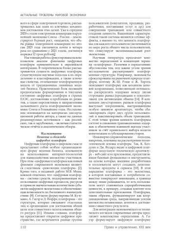 Ключевые фразы: ЕВРАЗИЙСКИЙ ЭКОНОМИЧЕСКИЙ СОЮЗ, ЕАЭС, ЦИФРОВЫЕ ПЛАТФОРМЫ, платформенная экономика, электронная коммерция, сетевые эффекты, экономическая интеграция, цифровая экономика