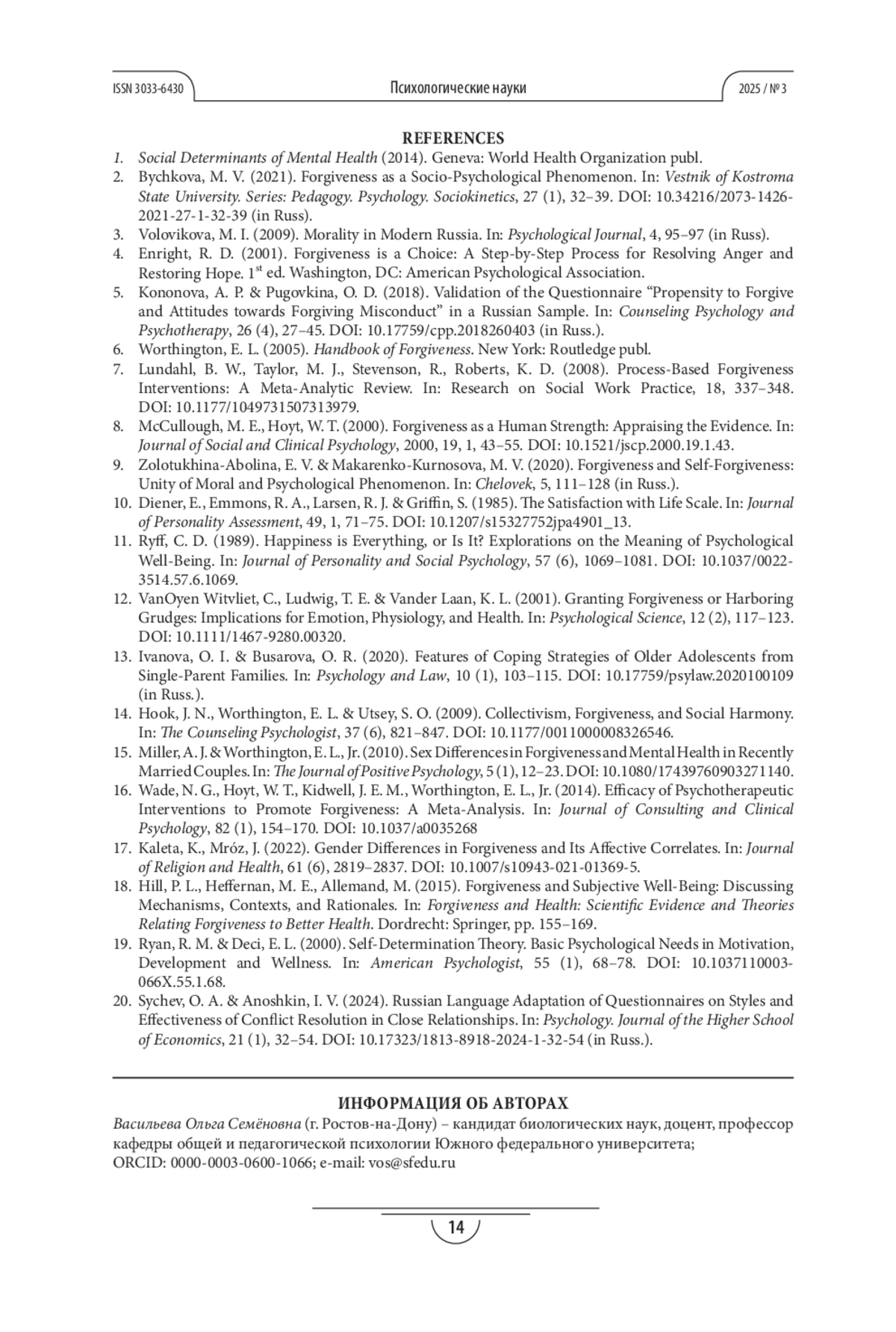 2. Бычкова М. В. Прощение как социально-психологический феномен // Вестник Костромского государственного университета. Серия: Педагогика. Психология. Социокинетика. 2021. Т. 27. № 1. С. 32-39. https://doi.org/10.34216/2073-1426-2021-27-1-32-39.