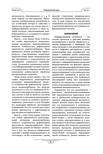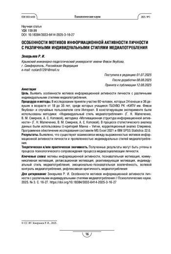 Цель. Выявить особенности мотивов информационной активности личности с различными индивидуальными стилями медиапотребления.
