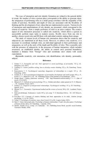 Ключевые фразы: креативность, ролевое взаимодействие, ролевые идентификации, ролевая идентичность, личность, субъект