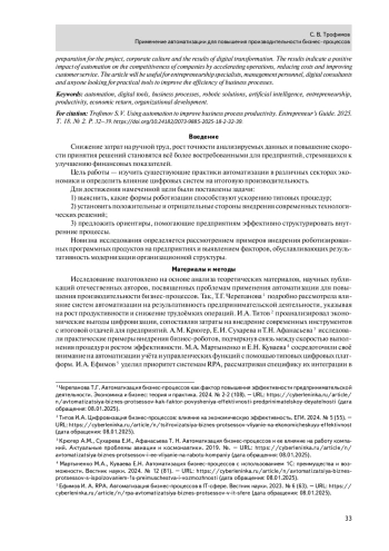 Статья: Применение автоматизации для повышения производительности бизнес–процессов (2025)