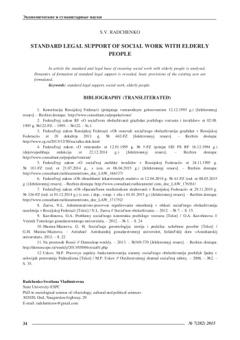 12. Усков, М.П. Правовые аспекты функционирования системы социального обслуживания пожилых людей в условиях построения Федерализма [Текст] / М.П. Усков // Отечественный журнал социальной работы. - 2006. - №2. - С. 35.