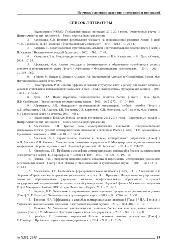 Статья: КОММЕРЦИАЛИЗАЦИЯ ИННОВАЦИЙ И ПЕРСПЕКТИВЫ РАЗВИТИЯ СЕТЕВЫХ ФОРМ ПОДДЕРЖКИ ИННОВАЦИОННЫХ ПРОЕКТОВ (2015)