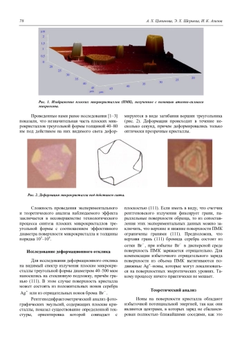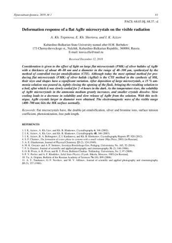 Статья: Деформационный отклик плоских микрокристаллов галогенида серебра AgBr на излучение видимого спектра (2019)