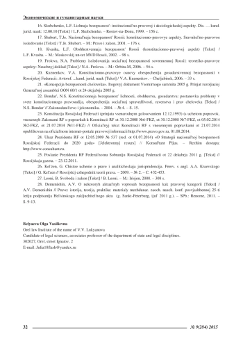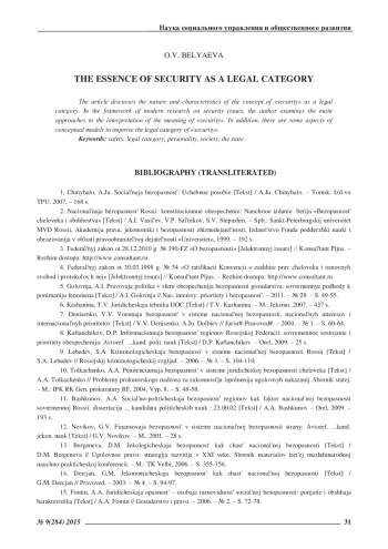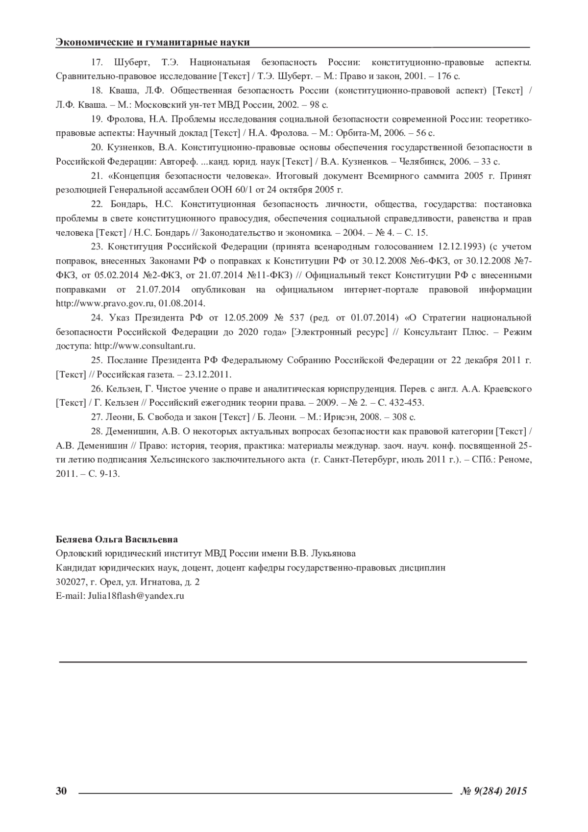 БЕЛЯЕВА О. В. СУЩНОСТЬ БЕЗОПАСНОСТИ КАК ПРАВОВОЙ КАТЕГОРИИ // ЭКОНОМИЧЕСКИЕ И ГУМАНИТАРНЫЕ НАУКИ. 2015. № 9 (284)