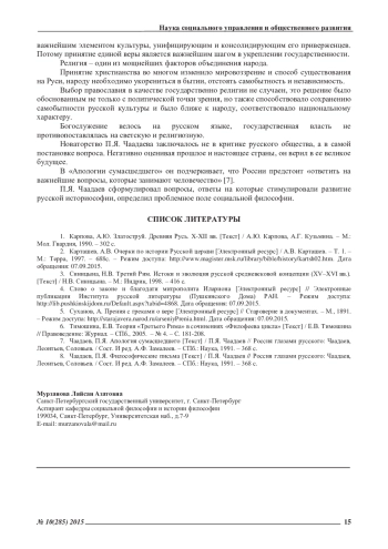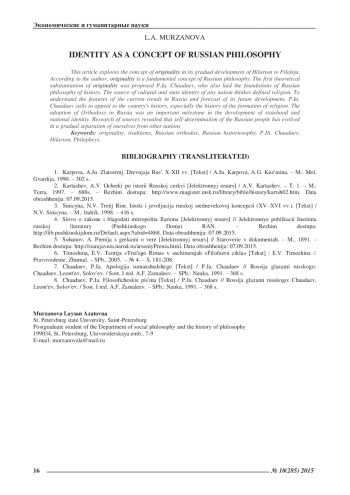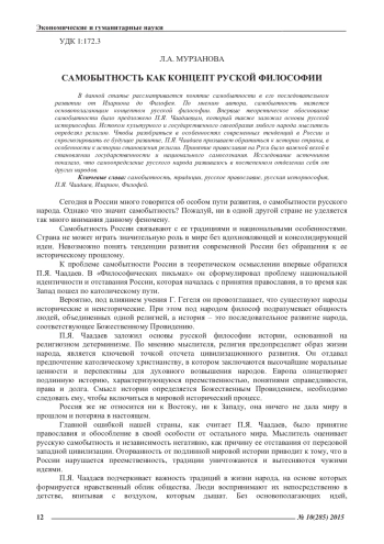МУРЗАНОВА Л. А. САМОБЫТНОСТЬ КАК КОНЦЕПТ РУССКОЙ ФИЛОСОФИИ // ЭКОНОМИЧЕСКИЕ И ГУМАНИТАРНЫЕ НАУКИ. 2015. № 10 (285)