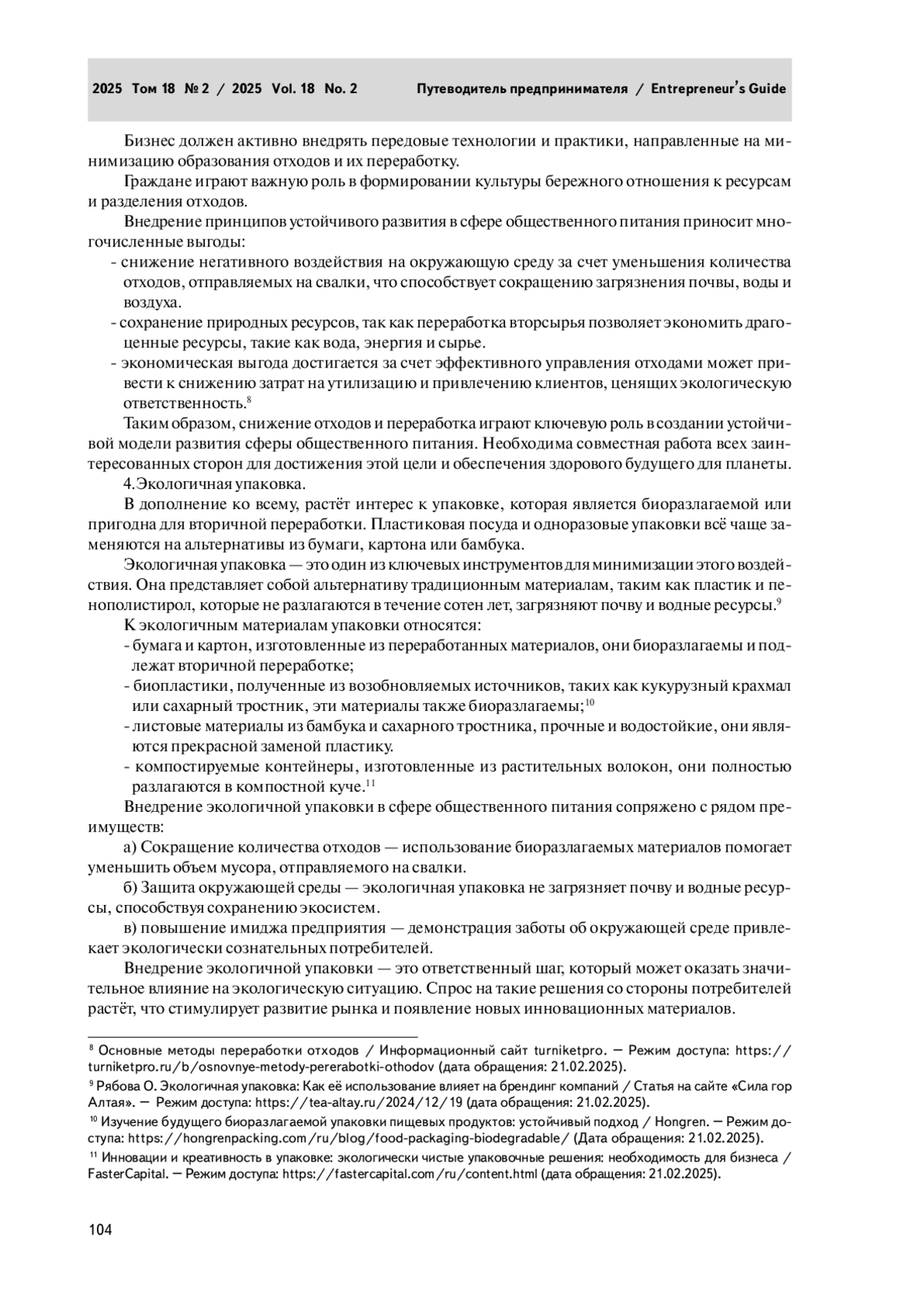 5. Инновации и креативность в упаковке: экологически чистые упаковочные решения: необходимость для бизнеса. FasterCapital. - Режим доступа: https://fastercapital.com/ru/content.html (дата обращения: 21. 02. 2025).