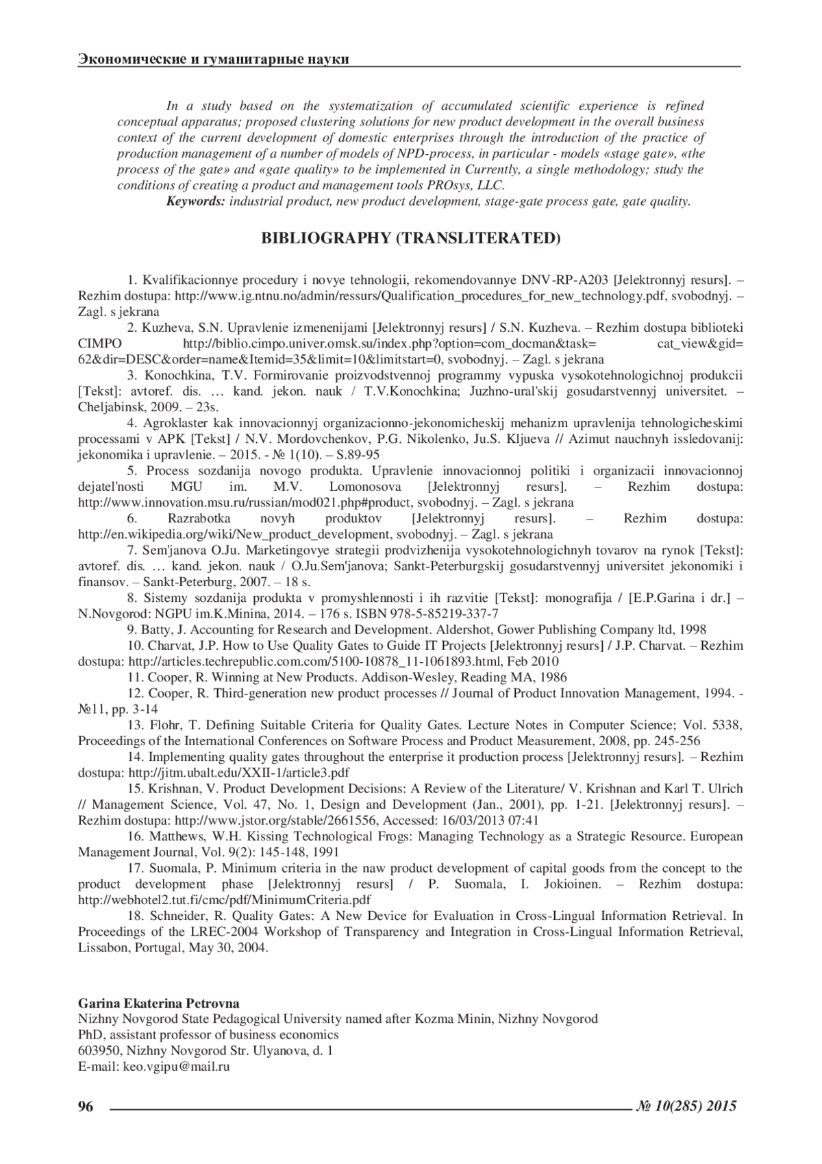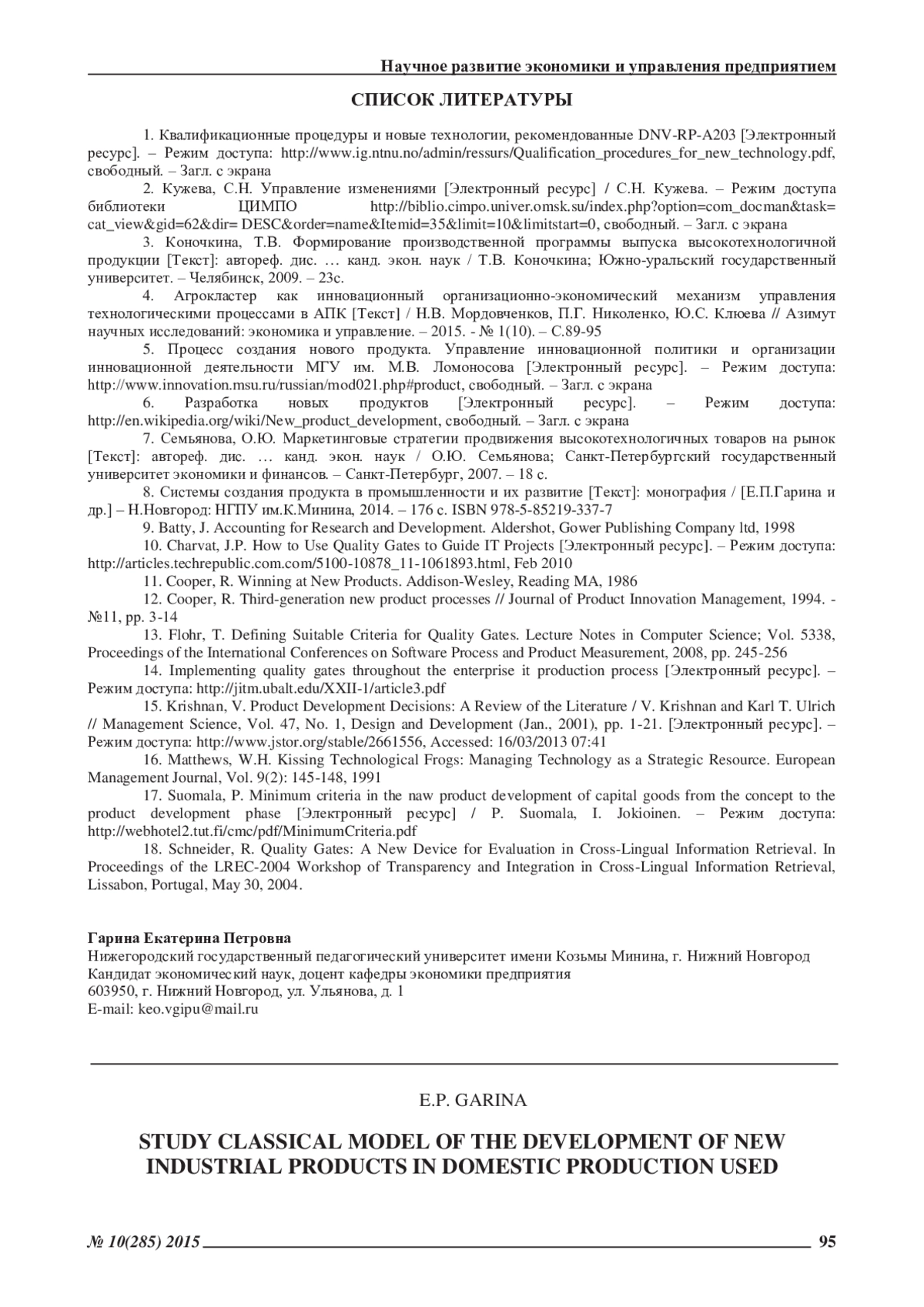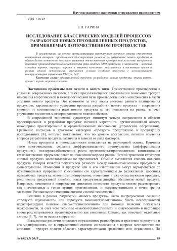 ГАРИНА Е. П. ИССЛЕДОВАНИЕ КЛАССИЧЕСКИХ МОДЕЛЕЙ ПРОЦЕССОВ РАЗРАБОТКИ НОВЫХ ПРОМЫШЛЕННЫХ ПРОДУКТОВ, ПРИМЕНЯЕМЫХ В ОТЕЧЕСТВЕННОМ ПРОИЗВОДСТВЕ // ЭКОНОМИЧЕСКИЕ И ГУМАНИТАРНЫЕ НАУКИ. 2015. № 10 (285)