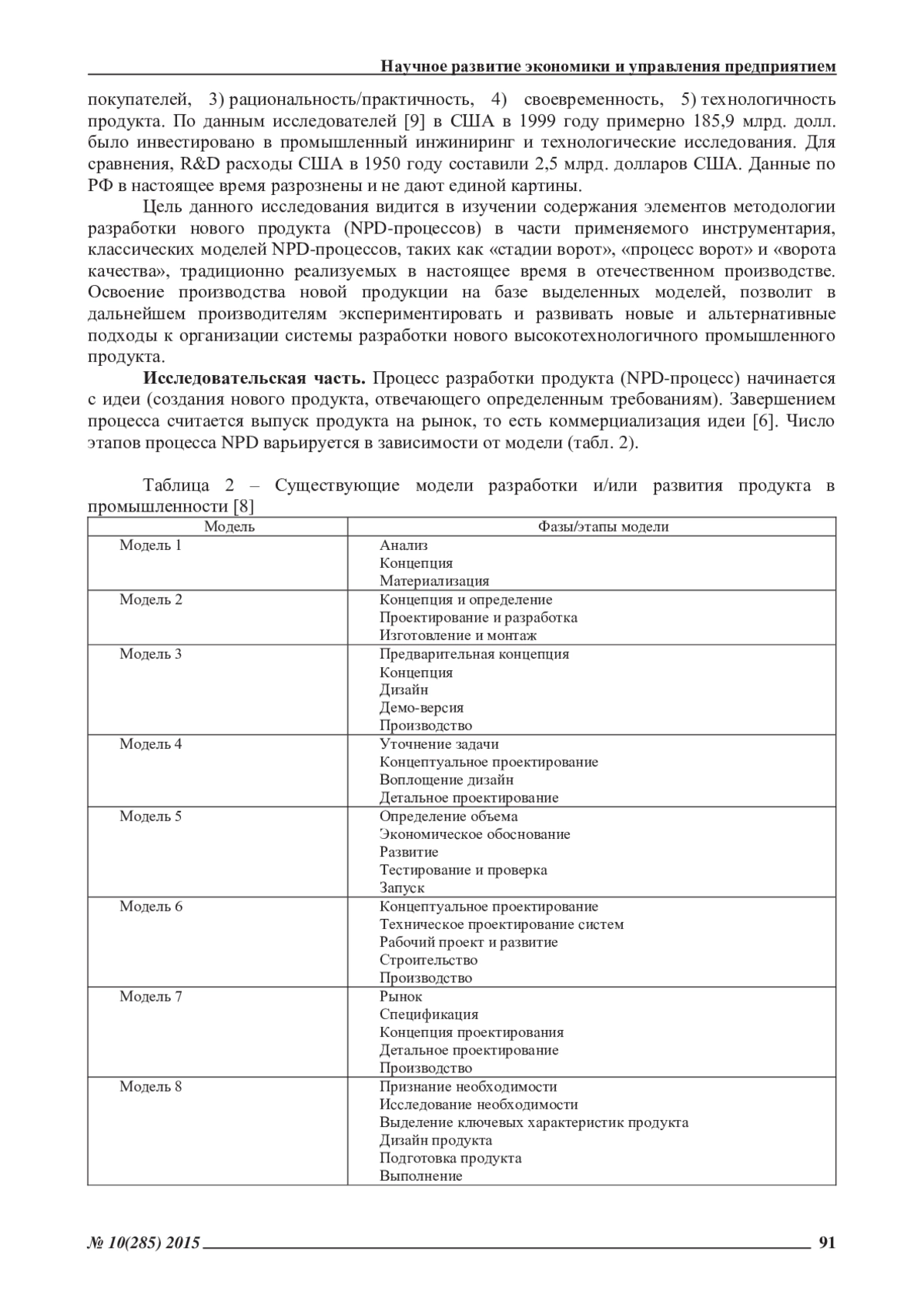 Статья: ИССЛЕДОВАНИЕ КЛАССИЧЕСКИХ МОДЕЛЕЙ ПРОЦЕССОВ РАЗРАБОТКИ НОВЫХ ПРОМЫШЛЕННЫХ ПРОДУКТОВ, ПРИМЕНЯЕМЫХ В ОТЕЧЕСТВЕННОМ ПРОИЗВОДСТВЕ (2015)