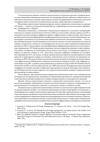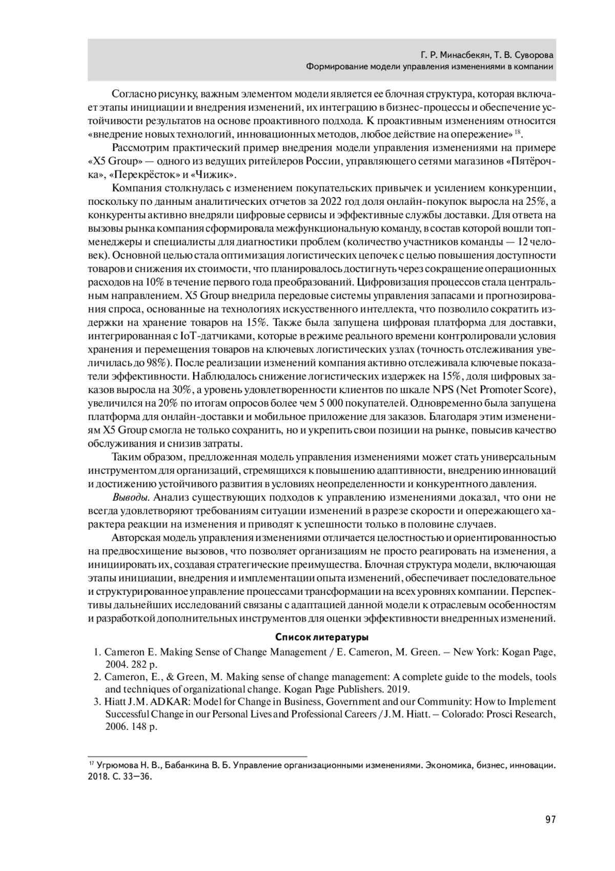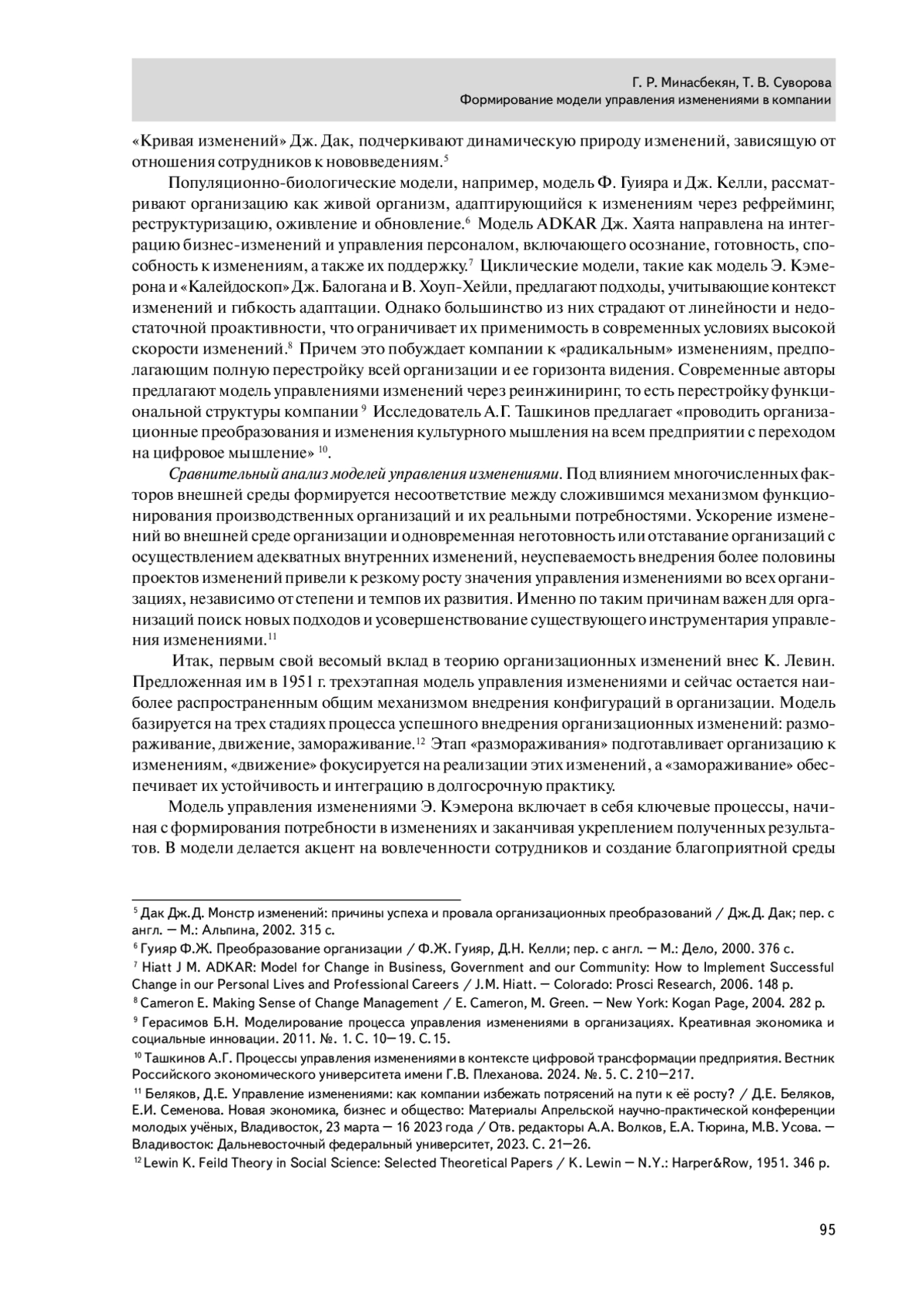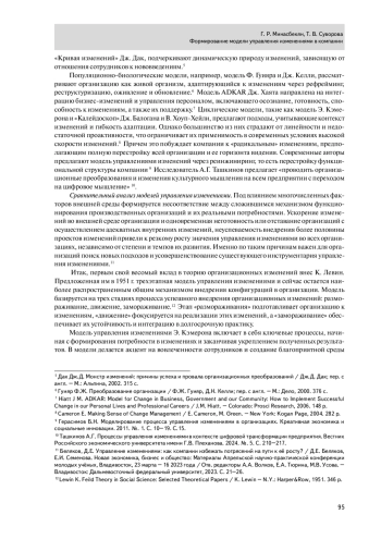 МИНАСБЕКЯН Г. Р., СУВОРОВА Т. В. ФОРМИРОВАНИЕ МОДЕЛИ УПРАВЛЕНИЯ ИЗМЕНЕНИЯМИ В КОМПАНИИ // РОССИЙСКАЯ АКАДЕМИЯ ПРЕДПРИНИМАТЕЛЬСТВА. 2025. Т. 18, № 2