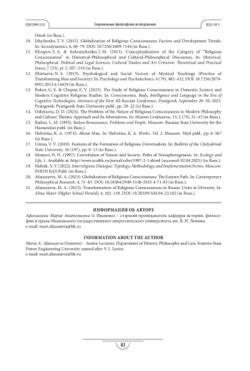 Результаты. Глобальное религиозное сознание предстаёт духовно-информационной системой, основными свойствами которой являются универсальность, коэволюция религиозных ценностей, смыслов мировых религий, формирование общего религиозно-мировоззренческого поля. Его основным содержанием становится формирующееся глобальное религиозное мировоззрение, характеризующееся универсальностью, включающее взаимосвязь и общие основания существующих мировых религий.