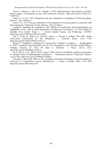 24. Yamazaki J., Miyoshi K. 2006. In vitro asymbiotic germination of immature seed and formation of protocorm by Cephalanthera falcata (Orchidaceae). - Annals of Botany. 98(6): 1197-1206. DOI: 10.1093/aob/mcl223 EDN: IKSNGT