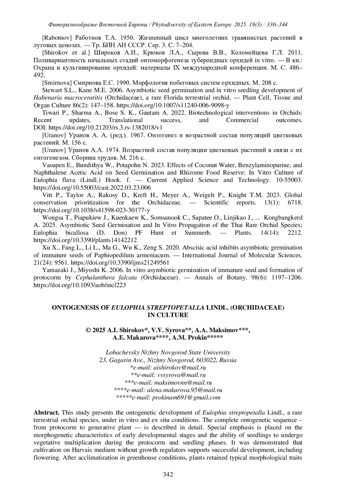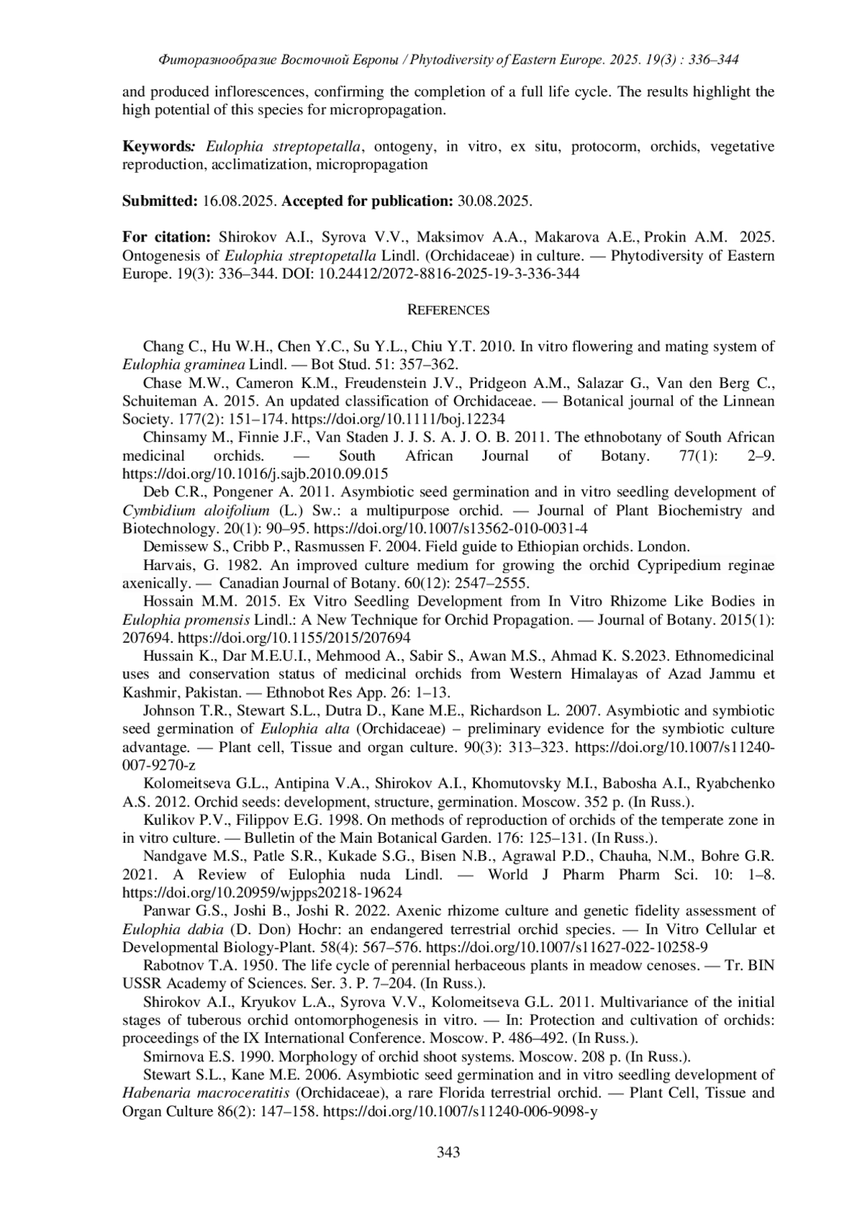 14. [Shirokov et al.] Широков А.И., Крюков Л.А., Сырова В.В., Коломейцева Г.Л. 2011. Поливариантность начальных стадий онтоморфогенеза тубероидных орхидей in vitro. - В кн.: Охрана и культивирование орхидей: материалы IX международной конференции. М. С. 486-492. EDN: TFPQUJ