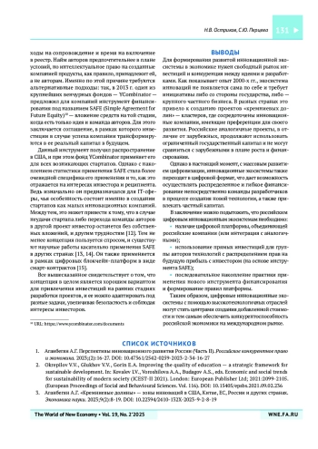 1. Аганбегян А.Г. Перспективы инновационного развития России (Часть II). Российское конкурентное право и экономика. 2023;(2):16-27. https://doi.org/10.47361/2542-0259-2023-2-34-16-27