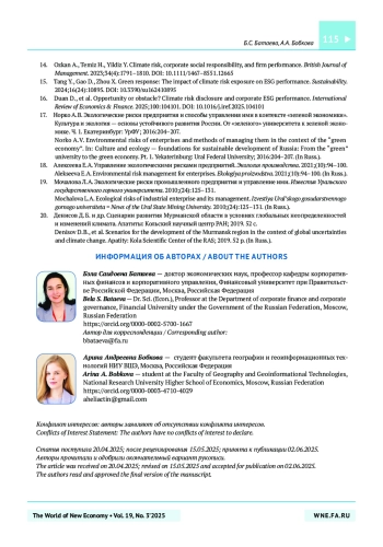 2. Батаева Б.С., Кокурина А.Д., Карпов Н.А. Влияние раскрытия ESG-показателей на финансовые результаты российских публичных компаний. Управленец. 2021;12(6):20-32. https://doi.org/10.29141/2218-5003-2021-12-6-2