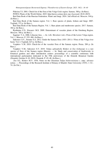 5. [Plaksina] Плаксина Т.И. 2001. Конспект флоры Волго-Уральского региона. Самара. 388 с. EDN: ZONIFT