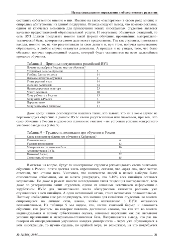 Мотивы поступления китайских студентов в ВУЗы Дальнего Востока. Сегодня, для успешного развития университета, международные связи просто необходимы. Это подтверждается тем фактом, что в РФ количество иностранных студентов, обучающихся в университете, официально стало одним из показателей его эффективности [1]. Относительно учебных заведений Дальнего Востока и, в частности, города Хабаровска наиболее привлекательным становится вариант привлечения на обучение китайских студентов. КНР – близко территориально, между нашими странами давние дружественные политические и крепкие экономические отношение. И, что самое главное, Китай один из лидеров по количеству студентов, обучающихся в разных странах мира