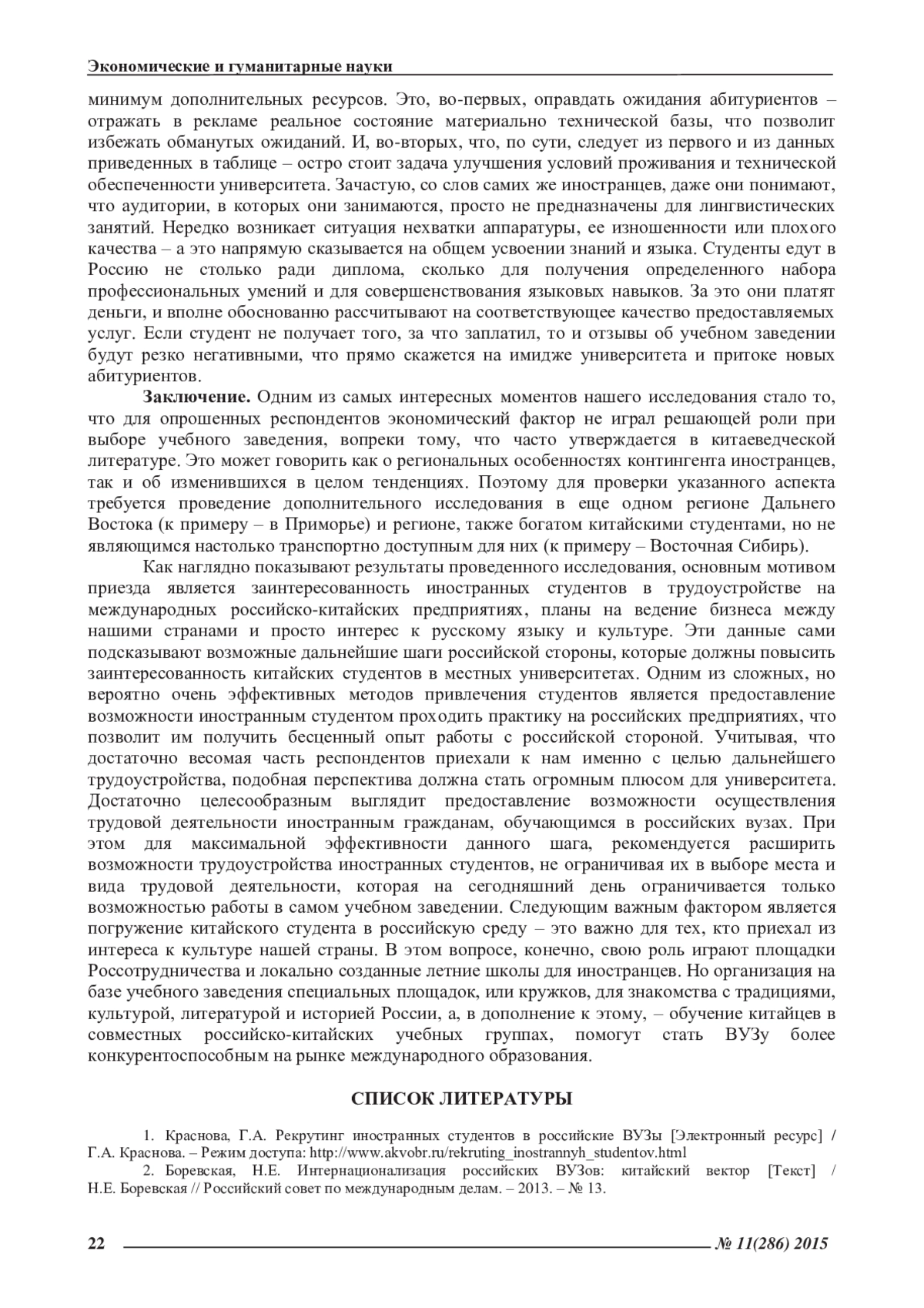 2. Боревская, Н.Е. Интернационализация российских ВУЗов: китайский вектор [Текст] / Н.Е. Боревская // Российский совет по международным делам. - 2013. - № 13.