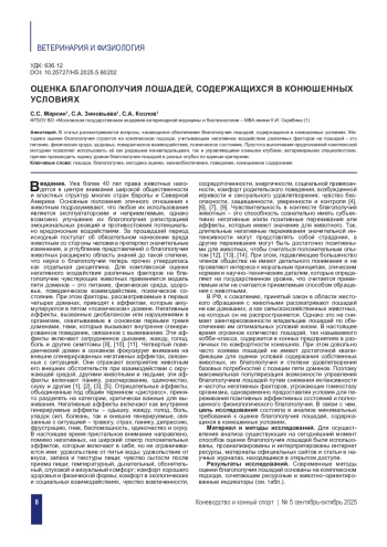 5. Зиновьева, С.А. Стрессовые факторы разнообразной природы при содержании и эксплуатации лошадей / Зиновьева С.А., Козлов С.А., Маркин С.С. // Иппология и ветеринария. - 2024. - №2(52). - С. 55-64.