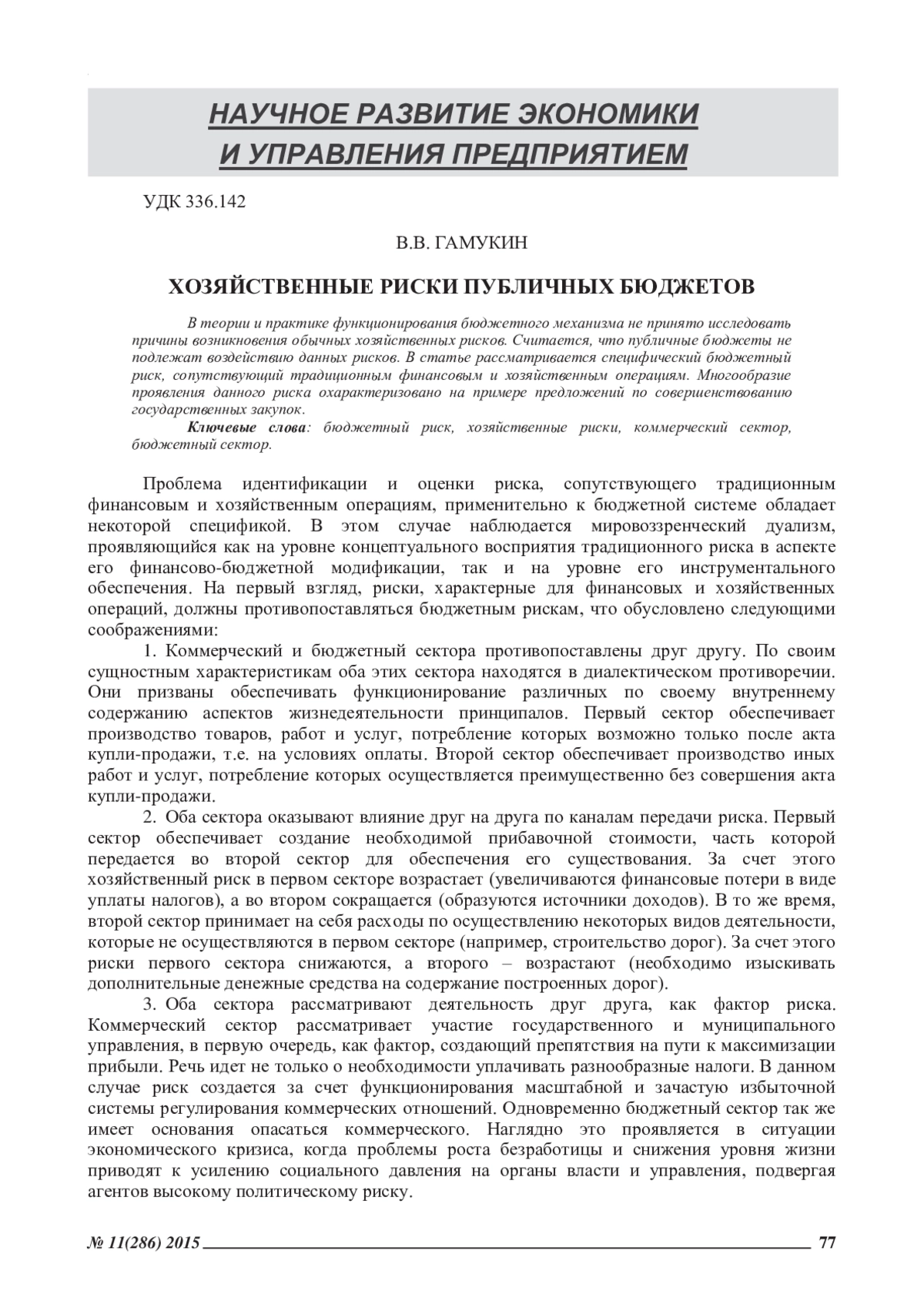 7. Желнова, К.В. Определение бюджетных рисков Удмуртской республики [Текст] / К.В. Желнова // Экономика и современный менеджмент: теория и практика. - 2015. - №48-2. - С. 93-103. EDN: TPEYWF