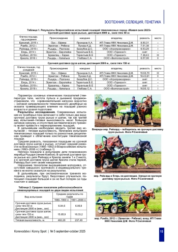 1. Грошев С.Г. Опыт испытания тяжеловозов и их помесей/С.Г. Грошев//Коневодство. 1952. № 3. С. 36-41.
