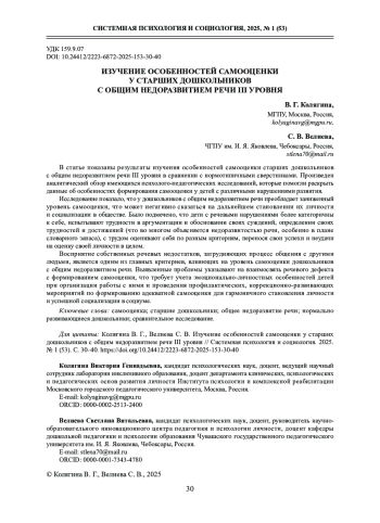 4. Горбунова Е. В., Хаидов С. К. Особенности формирования самооценки у старших дошкольников с общим недоразвитием речи // Акмеология. 2018. № 1 (65). С. 83-86. EDN: YSEDJG